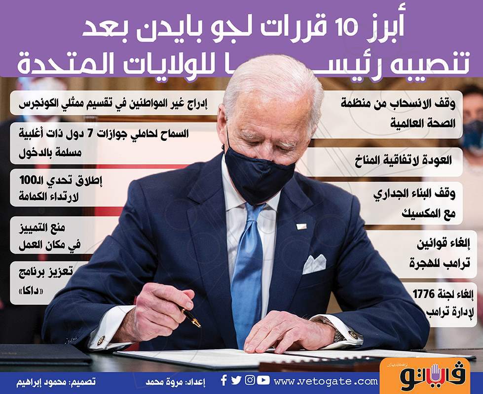 أبرز 10 قررات لجو بايدن بعد تنصيبه رئيسا للولايات المتحدة| إنفوجراف السبت 23/يناير/2021 - 03:54 م 1/23/2021 3:54:11 PM بايدن شارك طباعة 18 حجم الخط شارك طباعة دونالد ترامب جو بايدن ترامب الكونجرس أمريكا الولايات المتحدة الانتخابات الأمريكية نتائج الانتخابات الامريكية جو بايدن ترامب
