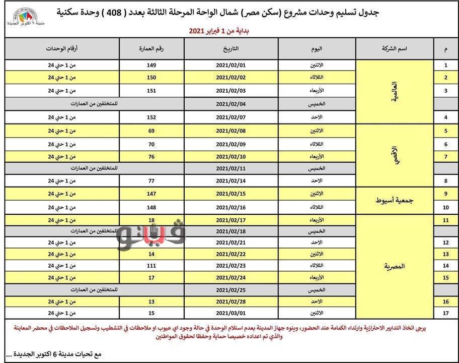 وجاءت مواعيد التسليم كاملة كالتالي: