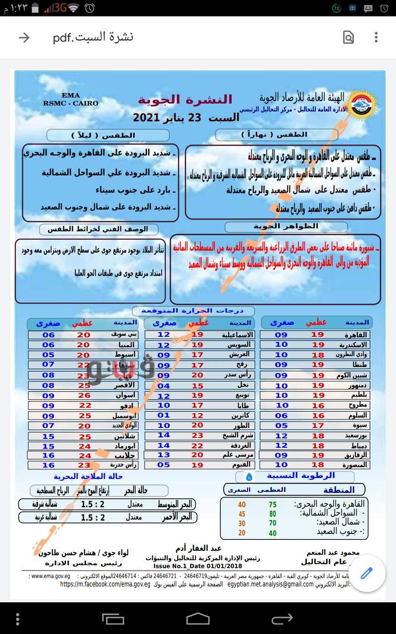 حالة الطقس اليوم السبت 23- 1-2021 في مصر