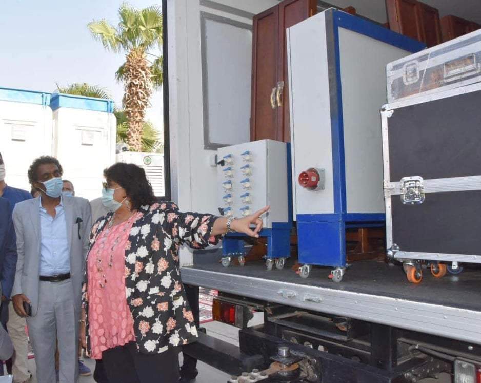وأشارت الوزيرة إلى أن المسارح المتنقلة تم تنفيذها بالتعاون مع وزارة الإنتاج الحربي ممثلة فى شركة حلوان لمحركات الديزل ( مصنع 909 الحربى ) تجسيدا للتكامل بين مؤسسات الدولة الوطنية.