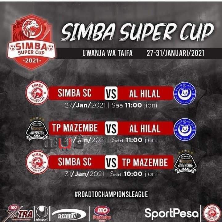 ينظم فريق سيمبا التنزاني بطولة ودية في الفترة من 27 إلى 31 يناير الجاري بملعبه بتنزانيا استعداداً لمباريات دوري المجموعات لبطولة دوري أبطال افريقيا لكرة القدم.