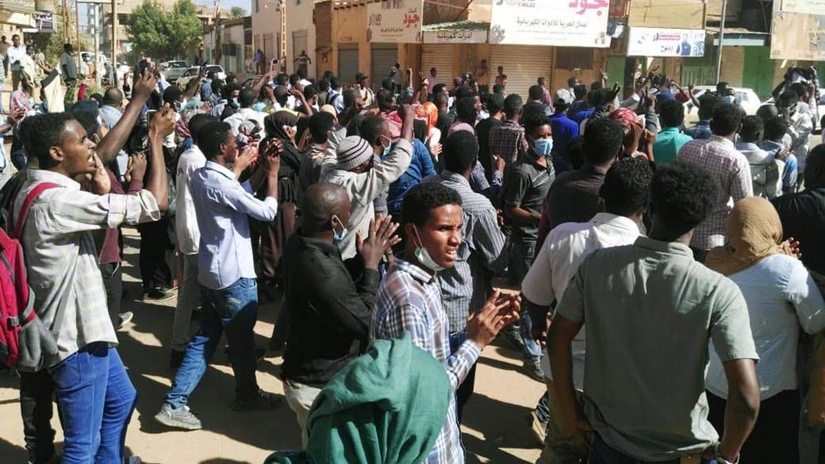 وطالب المتظاهرون بإسقاط النظام، وحكومة رئيس الوزراء عبدالله حمدوك، وتحقيق مطالب وأهداف الثورة.