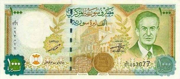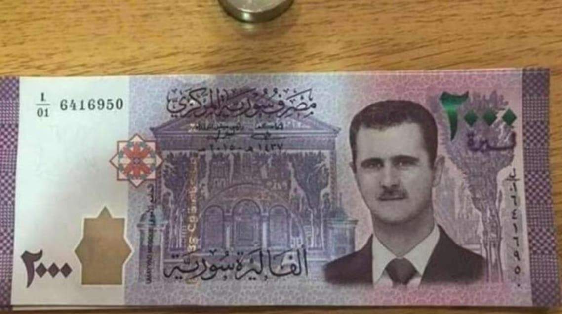 وكانت إحدى إصدارات الورقة النقدية، من فئة الألف ليرة، عليها صورة لحافظ الأسد، والد بشار، ورئيس سوريا السابق.