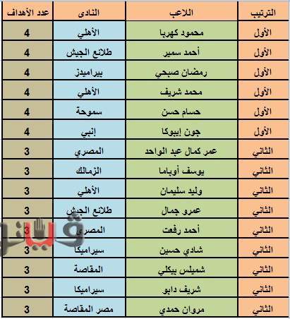 وجاء ترتيب جدول الهدافين على النحو التالي :