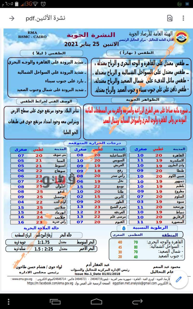 الأرصاد تعلن درجات الحرارة غدا الاثنين 25 / 1 / 2021