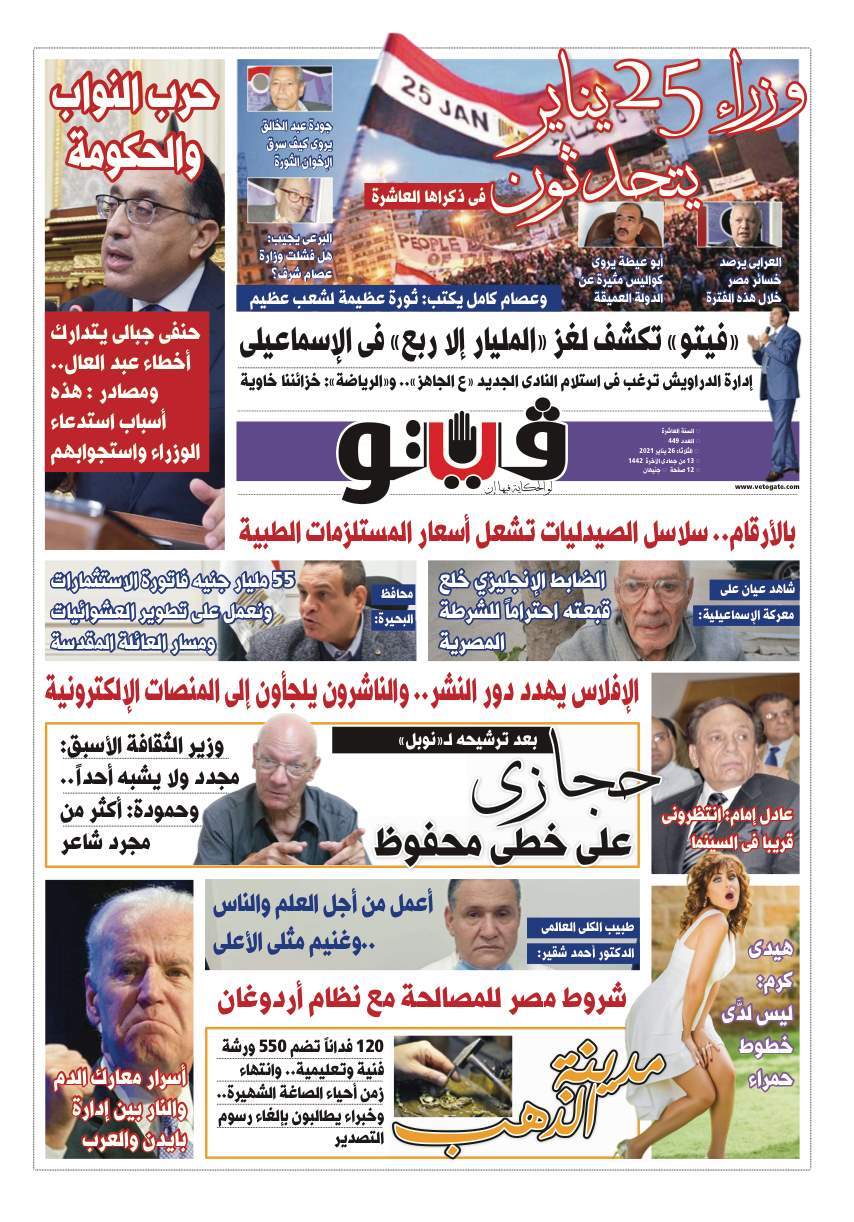 فيتو في عددها الجديد عدد من التصريحات لوزراء 25 يناير في ذكراها العاشرة أبرزهم جودة