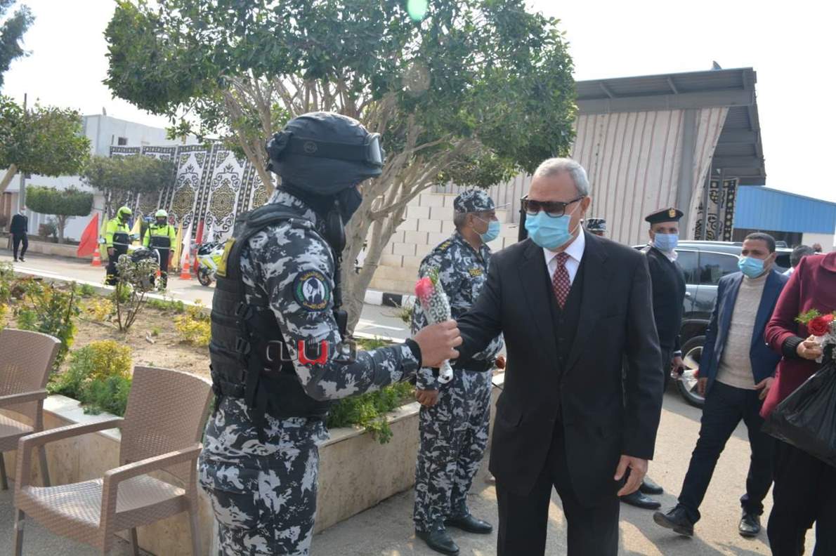 محافظ القليوبية يوزع الورود علي افراد الشرطة احتفالا بعيدهم | صور