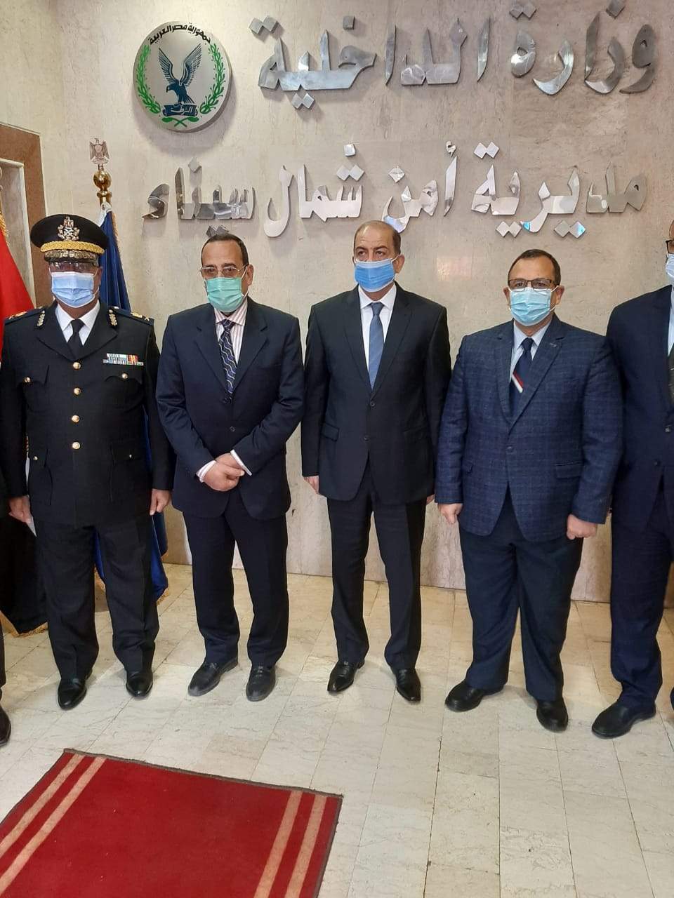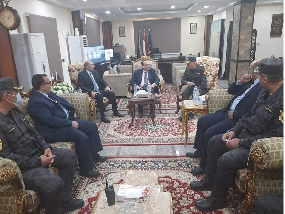 توجه الدكتور محمد عبد الفضيل شوشة محافظ شمال سيناء يرافقه اللواء هشام الخولى نائب المحافظ الى مقر مديرية أمن شمال سيناء لتقديم التهنئة بالذكرى 69 لعيد الشرطة.