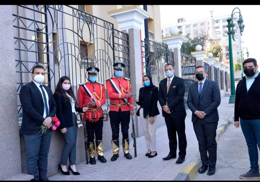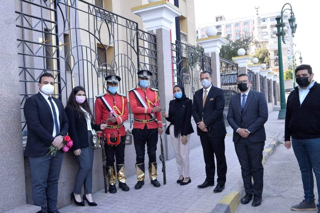 طلاب جامعة أسيوط يقدمون الورود لمدير الأمن ورجال الشرطة | صور