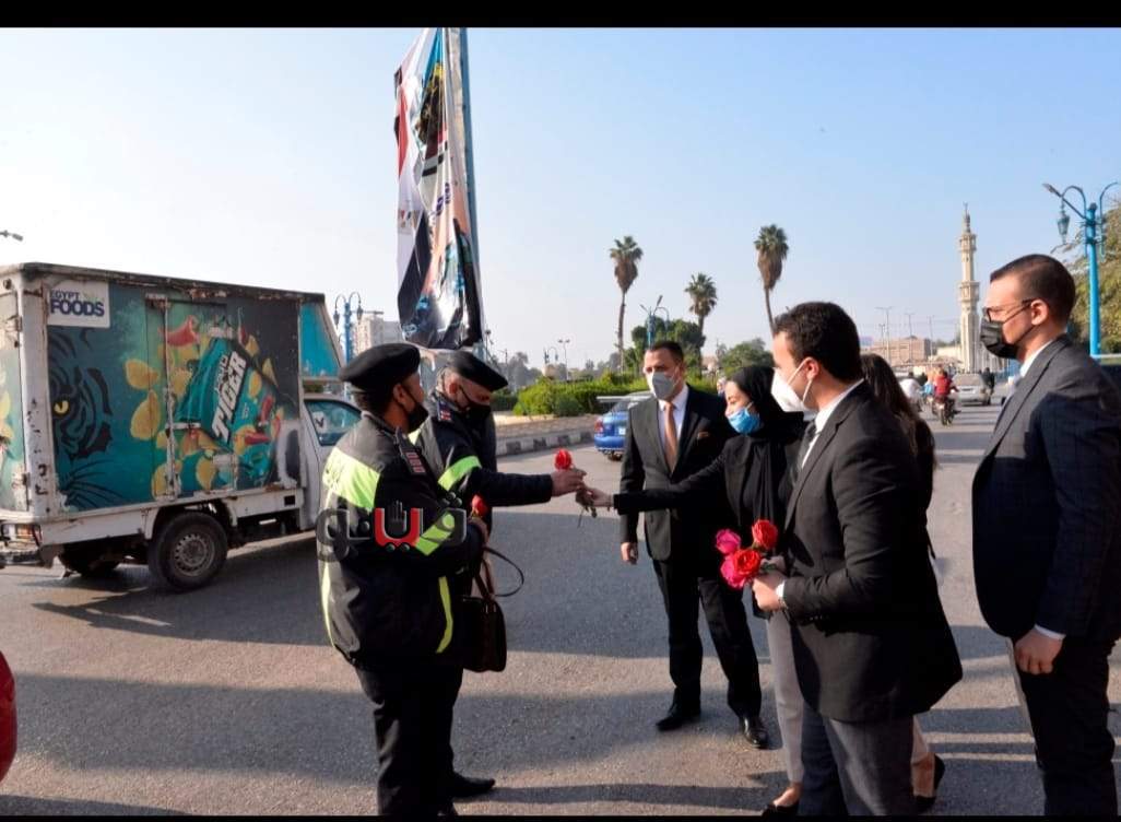 كما تضمن توزيع الورود على ضباط وأفراد أمن وجنود الشرطة فى شوارع وميادين أسيوط وذلك بمشاركة الطلاب ماريو أكرم، ومورين عادل، ومريم أحمد زرزور.