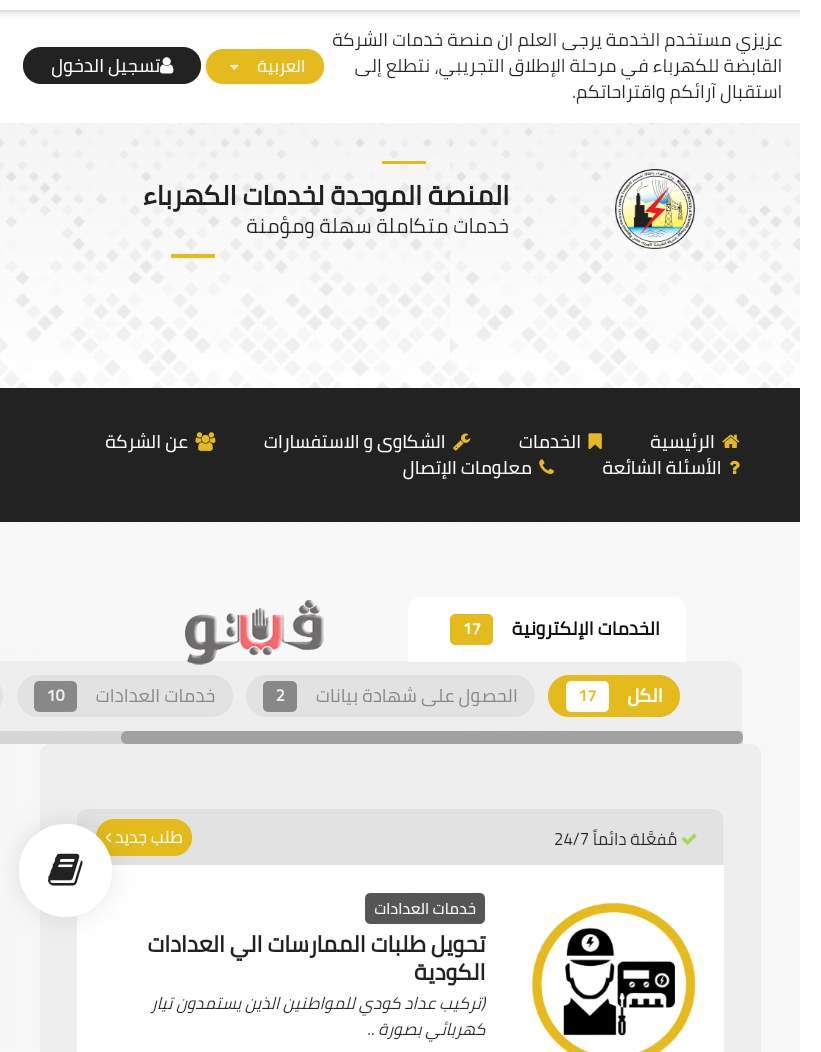 وفيما يلى رابط المنصة الإلكترونية الموحدة لخدمات الكهرباء
