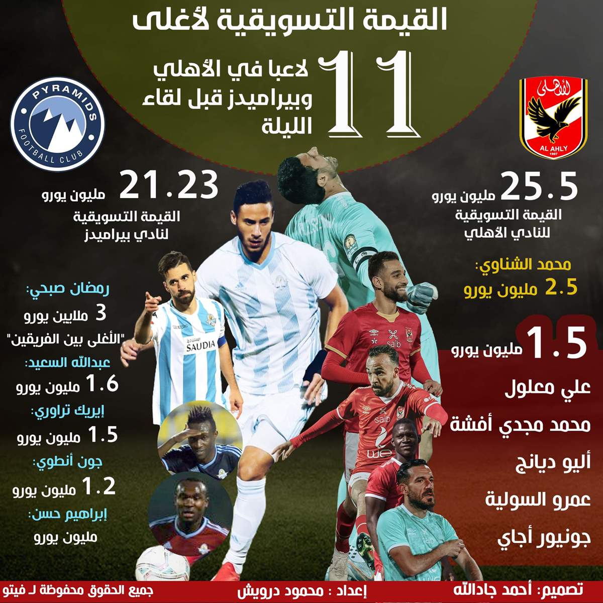 القيمة التسويقية لأغلى 11 لاعبا في الأهلي وبيراميدز | إنفوجراف