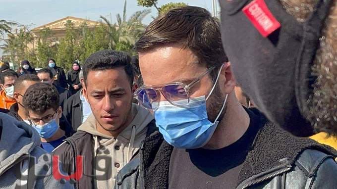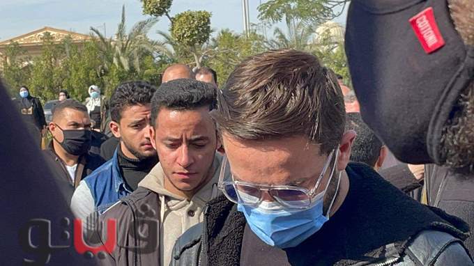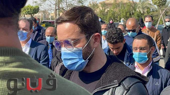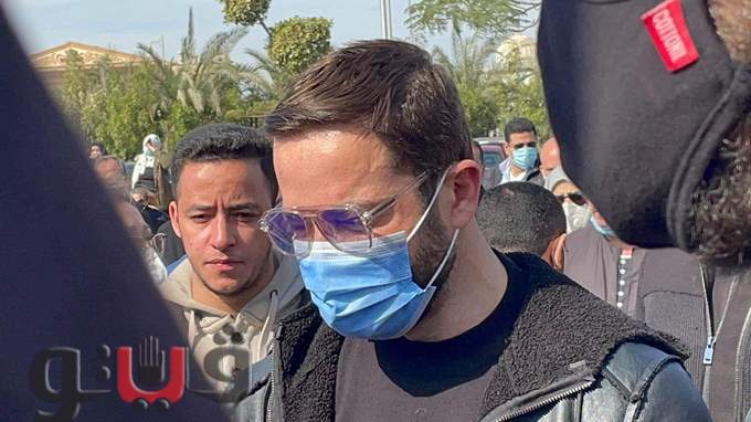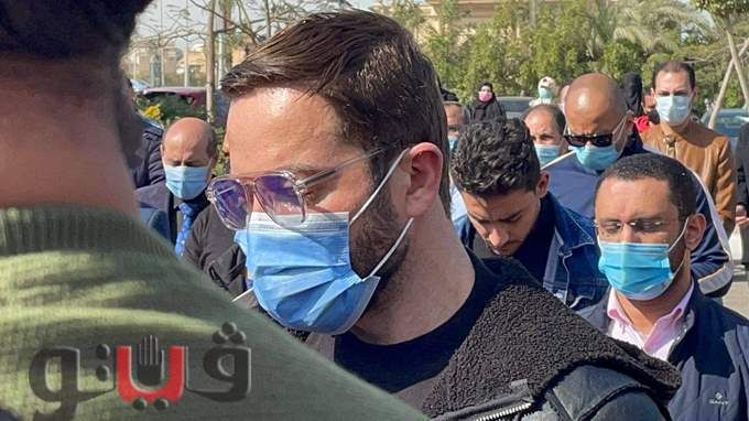 انهيار تامر شلتوت خلال جنازة والده بمسجد الشرطة |فيديو وصور
