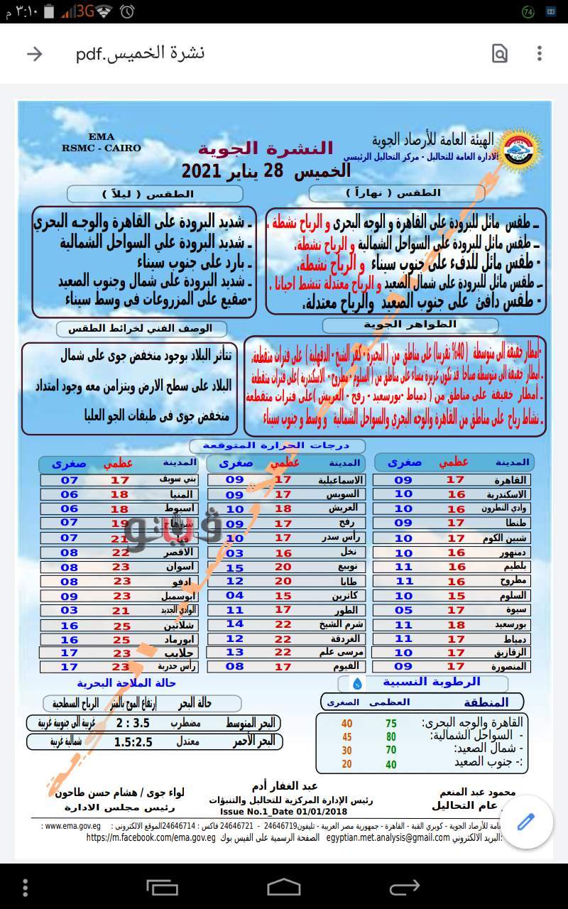 الأرصاد الجوية تعلن درجات الحرارة اليوم الخميس 2021/1/28