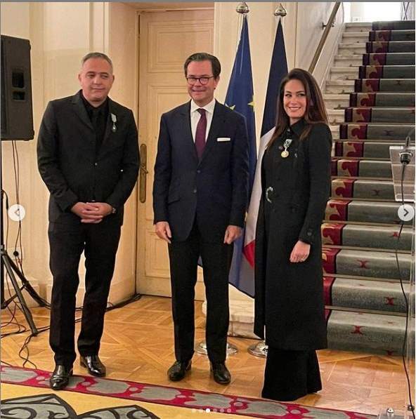 وشاركت هند صبري، مجموعة من الصور عبر حسابها في موقع "إنستجرام"، ظهرت فيها والمنتج محمد حفظي خلال توشيحهما بالوسامين من السفير الفرنسي بالقاهرة.