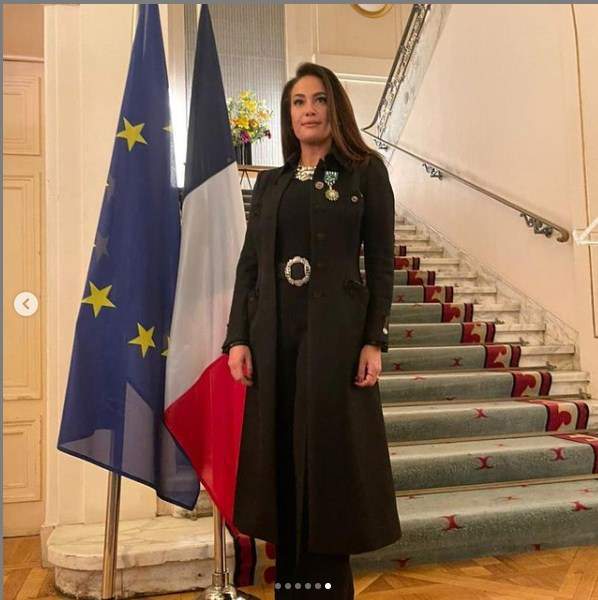 وهذا هو ثاني وسام تحصل عليه الفنانة التونسية من فرنسا "لمجهوداتها في الثقافة والفنون" بعد وسام فارس الذي حصلت عليه عام 2014.
