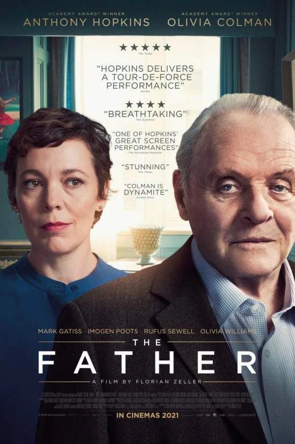 يدور فيلم The Father في إطار درامي إنساني شديد التأثير مستوحى من مسرحية Le Père الفرنسية التي صدرت عام 2012، وهو رقم 5 في قائمة أفضل 50 فيلم لهذا العام وفقًا لصحيفة "الجارديان"، ويدور حول قصة أب يعاني من فقدان الذاكرة وتنتقل ابنته إلى شقته للعناية به ولكنه يرفض كل وسائل المساعدة مع زيادة الشك في كل من حوله نتيجة أفكار من نسج خياله، والفيلم من إخراج فلوريان زيلر وبطولة أنتوني هوبكنز وأوليفيا كولمان.
