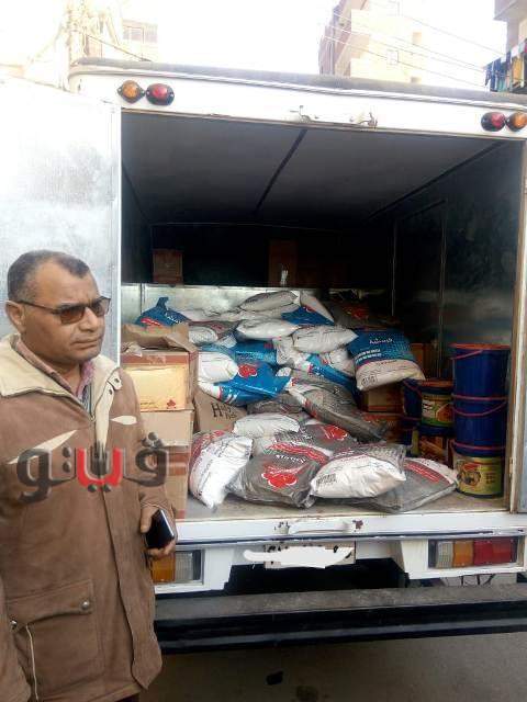 وتم ضبط ٣ طن دقيق مدعم و٣ طن و٣٠٠ كيلو سكر و٥ طن ملح و٥ طن و٩٦٠ خل وطن ملح ليمون و١٥ برميل زيتون مخلل و٦٥٠ كيلو دواجن مجمدة و٦٣٥ كيلو مكرونة و٣٠٠ كيلو سجق و٣٠٠ كيلو أرز و٤٨٠ زجاجة مياه غازية.