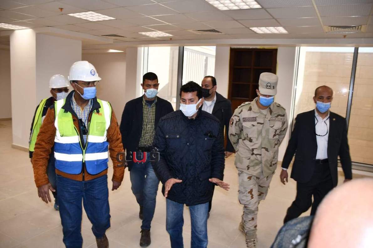 وتعرف وزير الشباب والرياضة على مكونات المبني، وأعمال التشطيبات النهائية الجارية، وما تم إنجازه من منشآت وتجهيزات للمبنى وفق المواصفات العالمية.