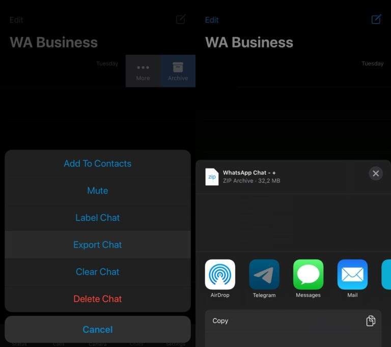 عليك تصدير دردشاتك من واتساب من إجراءات الدردشة: