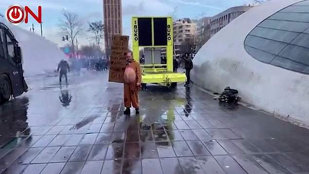 وأظهرت اللقطات التي تم تصويرها في أحد شوارع ايندهوفن اللحظة التي تلقت فيها دينيسا ستاستنا المياه المندفعة التي أطلقت من شاحنة للشرطة.