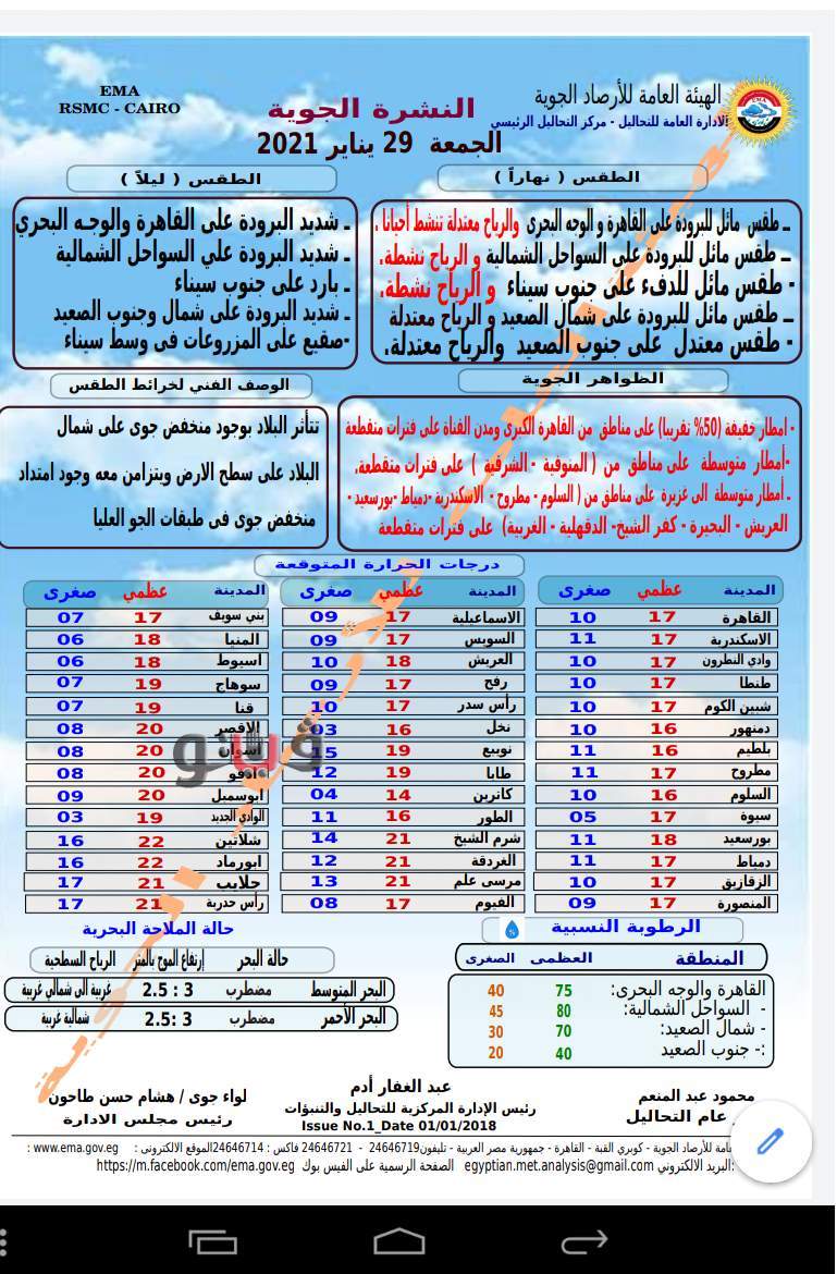 الأرصاد الجوية تعلن درجات الحرارة المتوقعة اليوم 2021/1/29