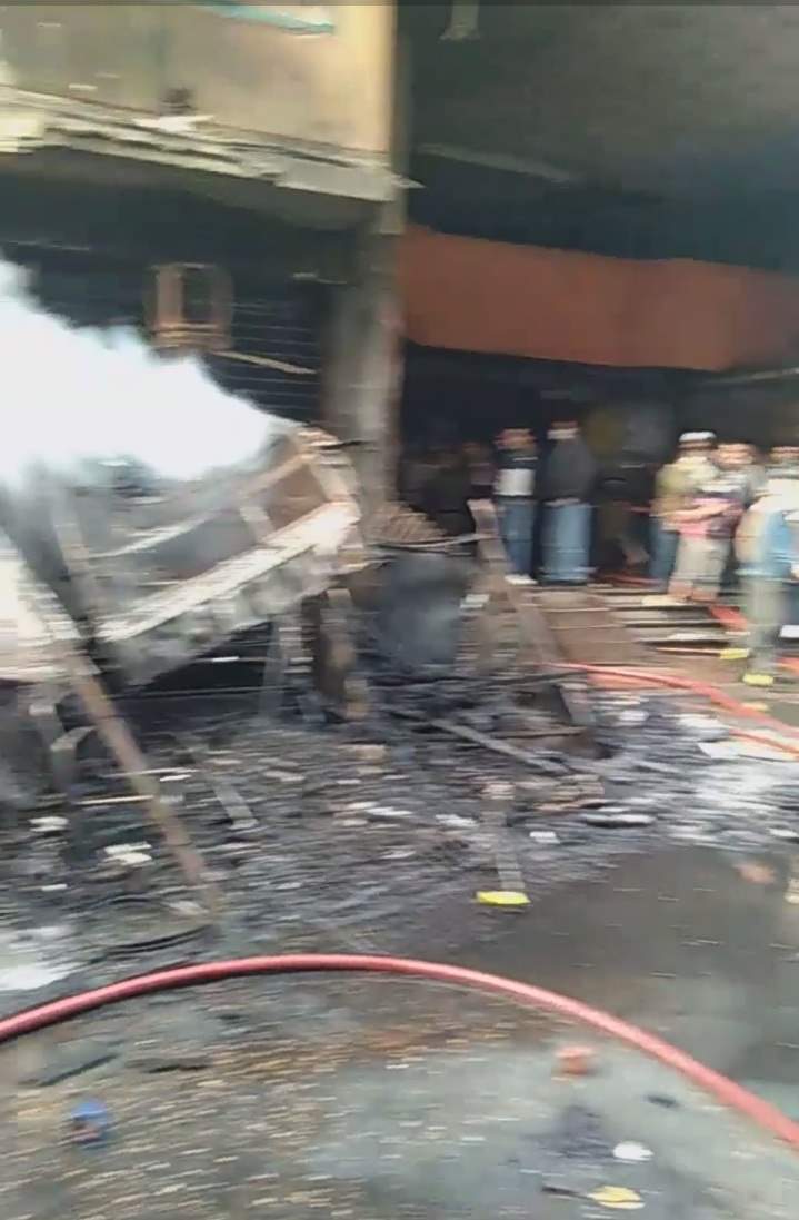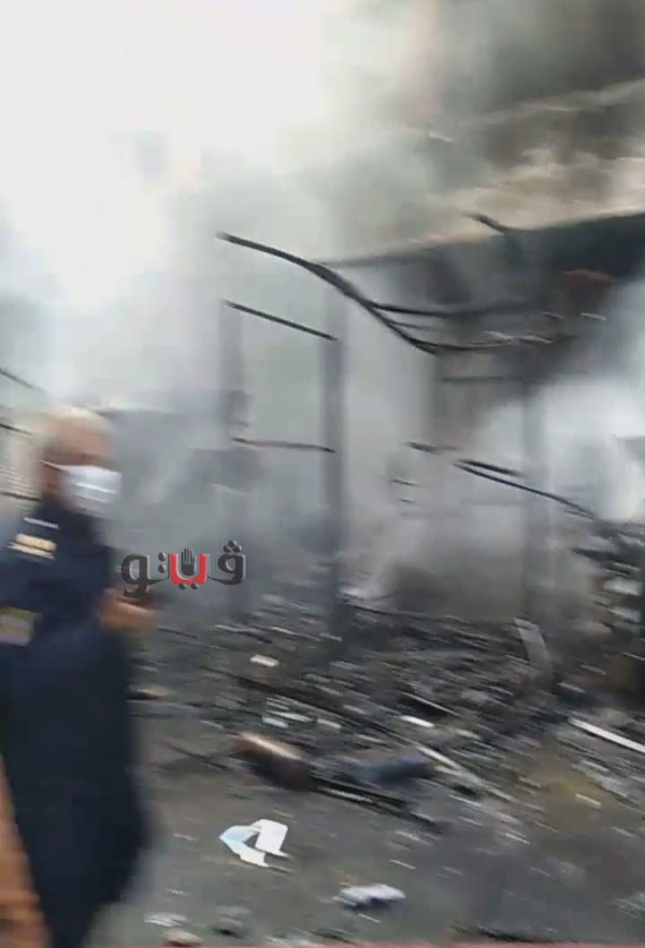 التهمت النيران عدد من المحال والأكشاك بعد اندلاع الحريق داخل مخزن قطع غيار بـ سوق التوفيقية .