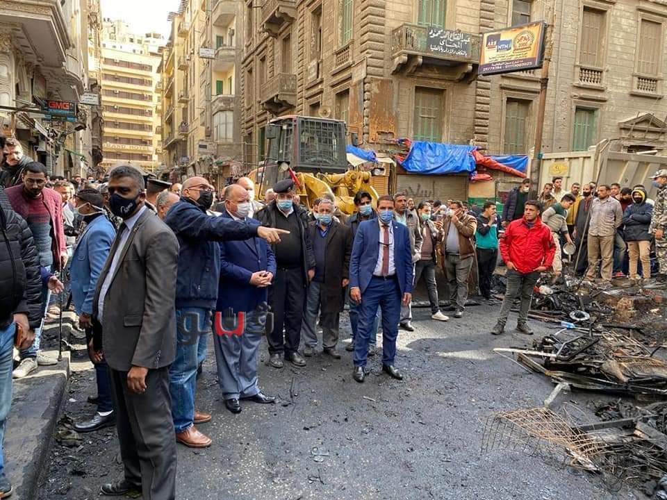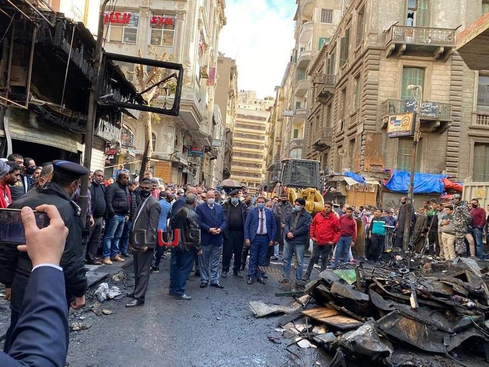 تفقد اللواء خالد عبد العال محافظ القاهرة موقع الحريق الذى اندلع صباح اليوم بمنطقة التوفيقية يرافقه نائب المحافظ للمنطقة الغربية ومسئولو حى الأزبكية.