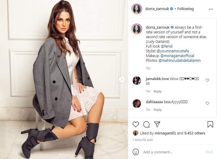 وكتبت درة عبر إنستجرام "كن دائماً الاصدار الاول من نفسك ، ولا تكن الإصدار الثاني من أحد آخر (جودي جارلاند)".