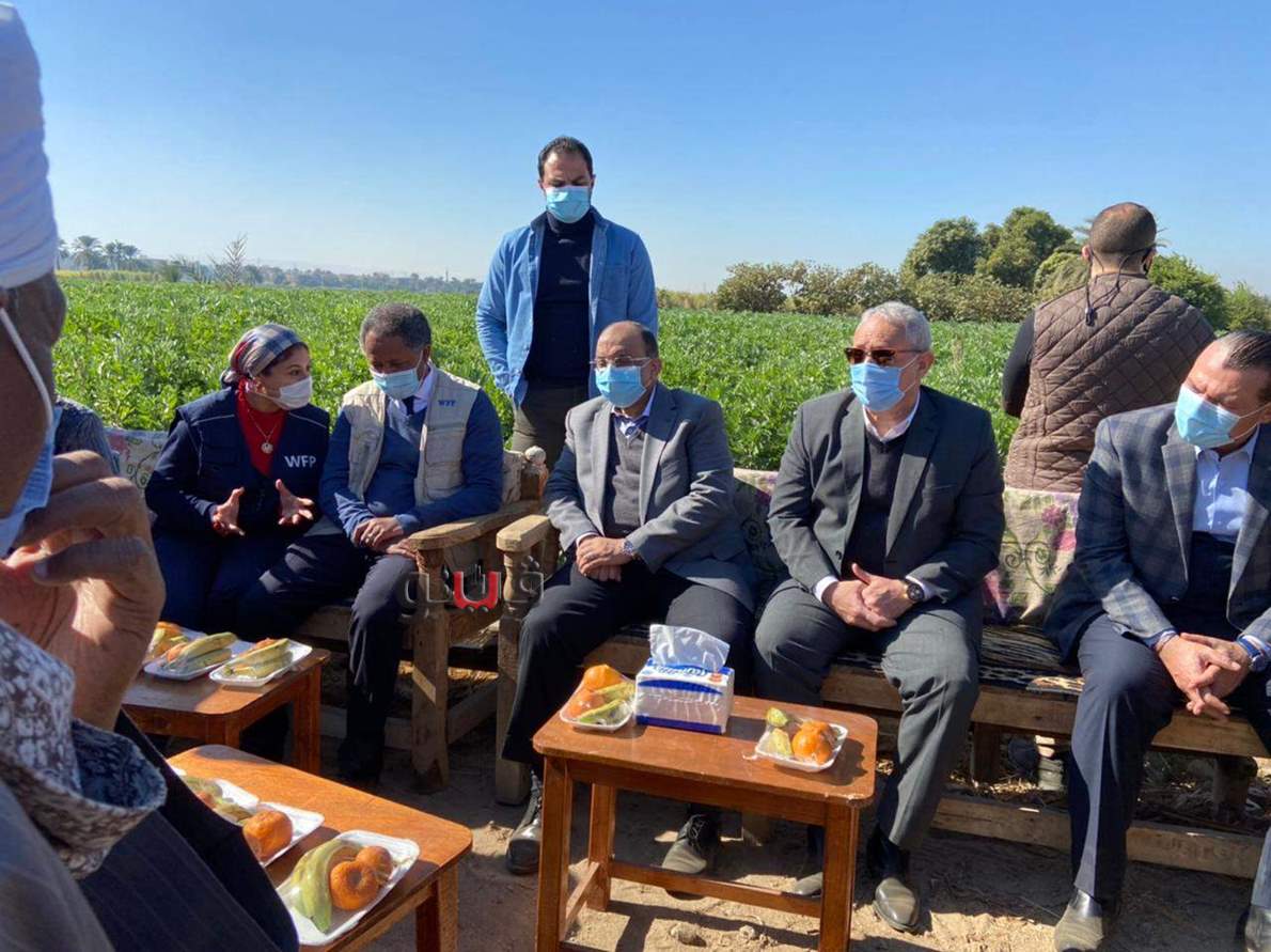 واستمع وزير التنمية المحلية من المزارعين الي تفاصيل مشروع التغيرات المناخية بالبغدادى والذي يعد أحد مشروعات برنامج الأغذية العالمي التابع للأمم المتحدة لدعم أكثر من 120 ألف شخص من خلال التدخلات المنفذة لمواجهة تغير المناخ والتوعية .