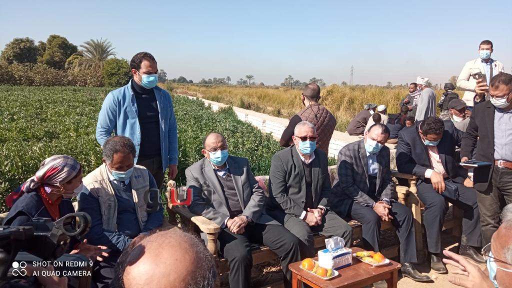 وجلس الوزير ومرافقيه ومحافظ الاقصر المستشار مصطفي الهم على المقاعد الخشبية وسط الزراعات للاستماع الي شكواهم في مختلف المشكلات الخاصة بالمحاصيل الزراعية .