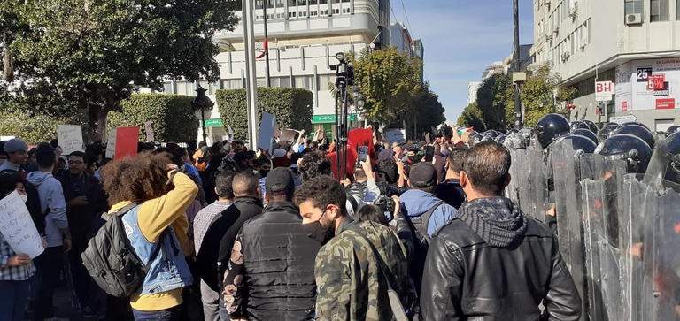 وشهدت تونس احتجاجات في مناطق عدة في البلاد، بالتزامن مع الذكرى العاشرة للانتفاضة التي أطاحت حكم زين العابدين بن علي.
