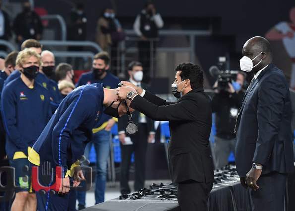 وقام رئيس الوزراء بتسليم كأس البطولة لفريق الدنمارك الفائز بالمركز الأول بمشاركة رئيس الاتحاد الدولي للعبة، إضافة إلى تسليم راية تنظيم المونديال في نسخته الـ 28 إلى مسئولي دولتي السويد وبولندا، المزمع استضافة المونديال بهما عام 2023.