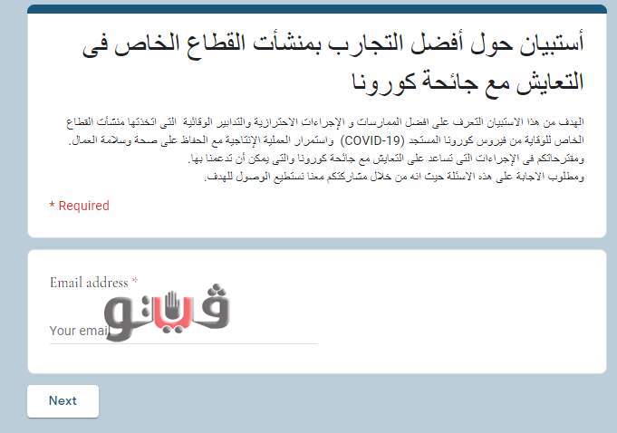 ويهدف الاستبيان التمهيد لوضع آليات وضمانات التوفيق بين استمرار العمل والحفاظ على صحة وسلامة العاملين والمترددين على المنشآت من خلال تبني حزمة من الإجراءات الاحترازية بشأن الوقاية والتعايش مع جائحة كورونا.