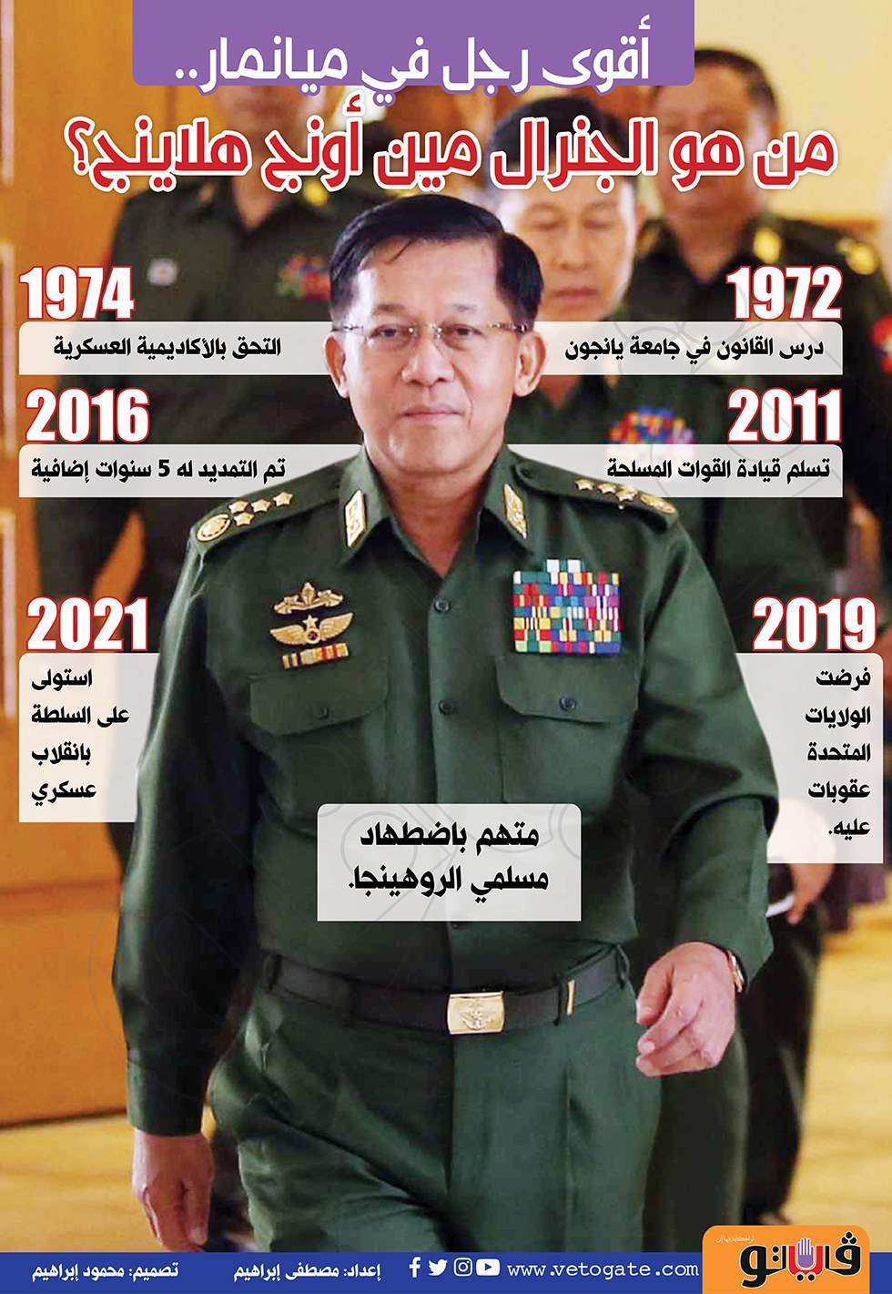 أقوى رجل في ميانمار.. من هو الجنرال مين أونج هلاينج؟ | إنفوجراف