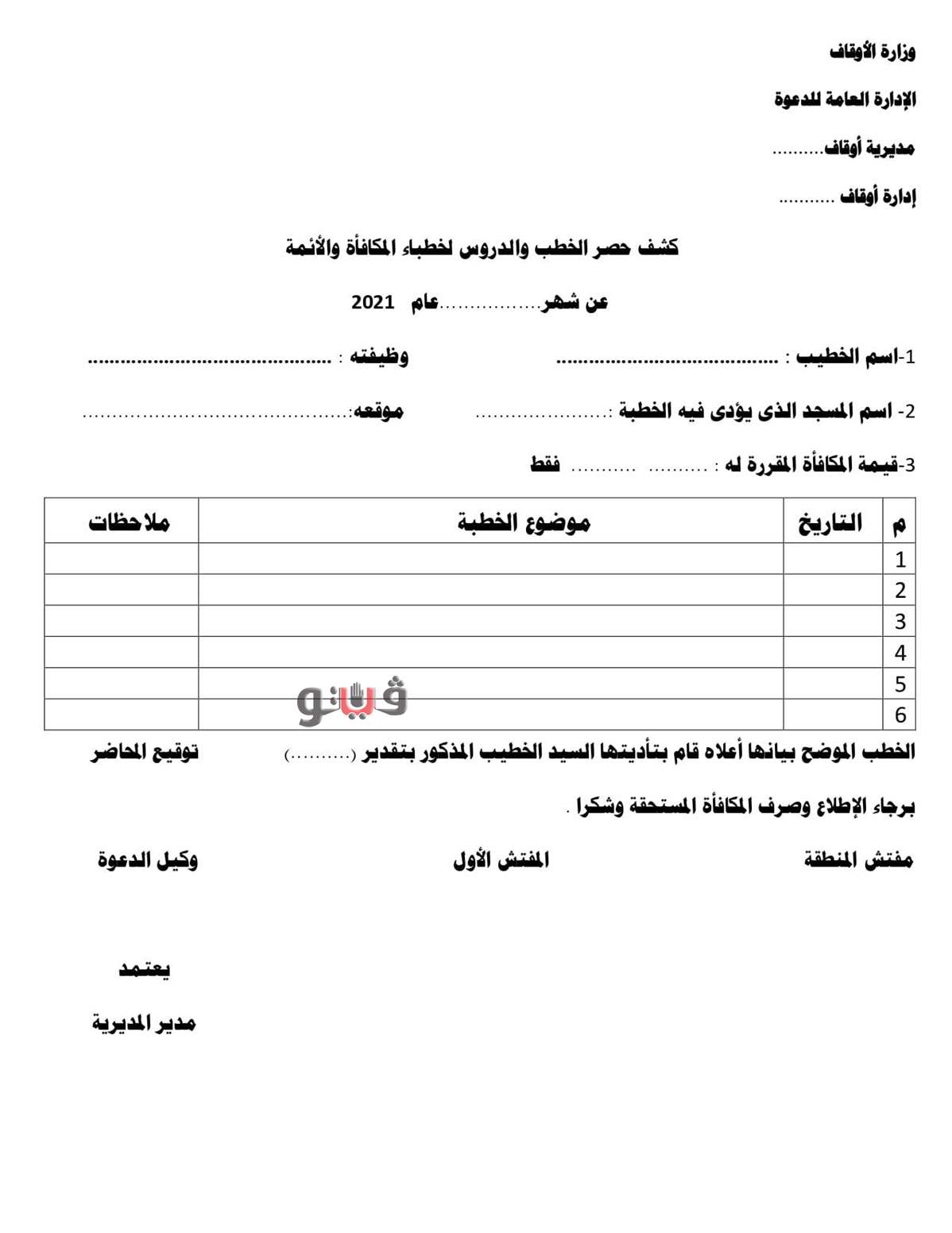 نموذج كشف حصر الخطب والدروس لخطباء المكافأة 2021