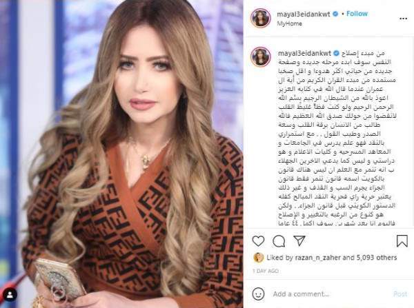 وتابعت "حرية النقد كفلها الدستور الكويتي قبل قانون الجزاء، ولكن هو كنوع من الرغبة بالتغيير والإصلاح، فاليوم أنا بعد شهرين سوف أكمل 44 عاماً ومن المؤكد لن أعيش 44 عاماً أخرى، لذلك قررت أن أكون أفضل من أجلي ومن أجل مرضاة ربي، وسأحاول توثيق علاقتي به أكثر كما سأحاول تبنّي طفل أو طفلة من الكويت بعدما فشلت في تبني الطفلة السورية وسأسامح الجميع وأتمنى أن يسامحني الجميع، ونقطة ومن أول السطر أبدأ حياة جديدة".