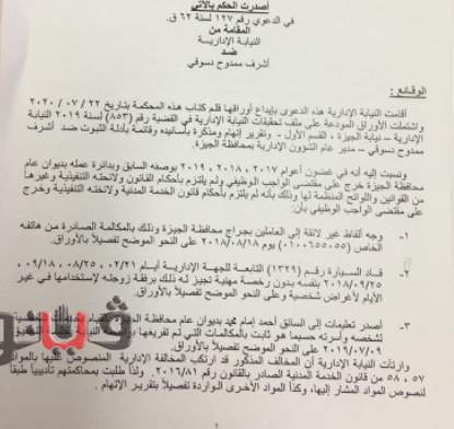 التأديبية العليا تعاقب مدير عام الشئون الإدارية بمحافظة الجيزة