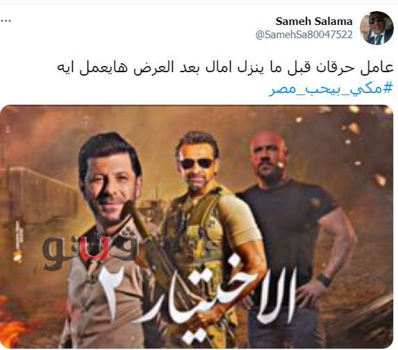 وقال سميح سلامة: "المسلسل عامل حرقان قبل ما ينزل أومال بعد العرض هيعمل إيه #مكي_بيحب_ مصر".