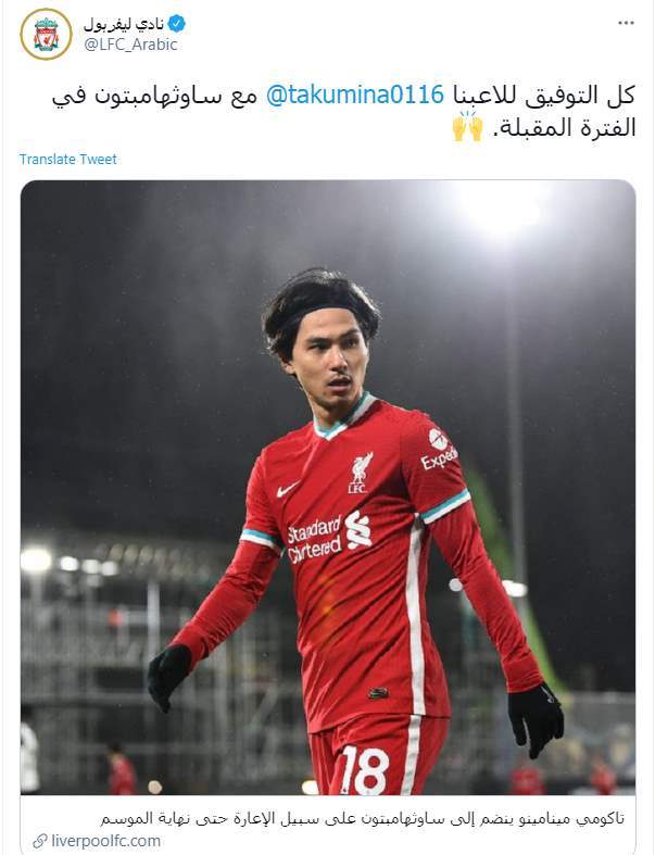 وكتب نادي ليفربول تغريدة على تويتر "كل التوفيق للاعبنا @takumina0116 مع ساوثهامبتون في الفترة المقبلة"