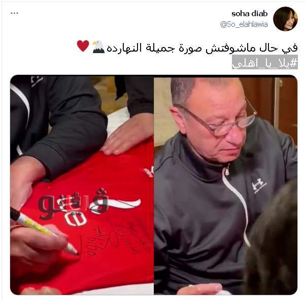 ونشرت سوها دياب، صورة الكابتن محمود الخطيب رئيس النادي وعلقت عليها قائلة: في حال ماشوفتش صورة جميلة النهاردة، يلا يا أهلي.
