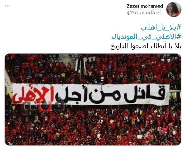 ونشرت زيزيت محمد صورة لجماهير النادي الأهلي يرفعون لافتة مكتوبا عليها: "قاتل من أجل الأهلي".