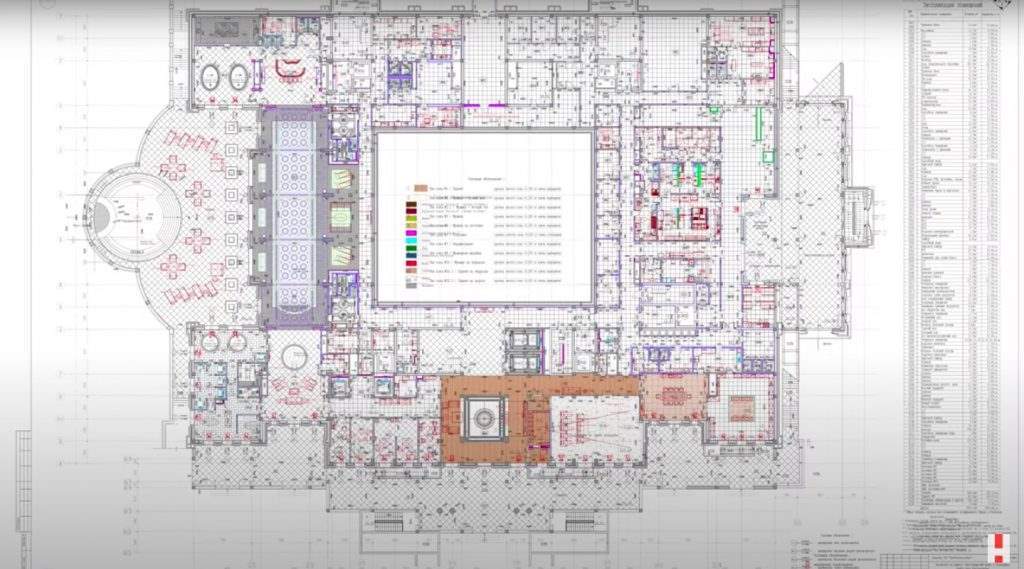 وبحسب مجلة "تايم" فأنه خلال سنوات مضت، تلقى فريق منظمة مكافحة الفساد التي يترأسها المعتقل أليكسي نافالني، معلومات مسربة حول القصر مثل صور ومخططات بناء، جاءت بحسب تقرير المجلة من عدد من العمال المشاركين في بناء القصر وامتداداته، وكان يحظر على العمال المشاركين كما يبدو استخدام هواتفهم في الموقع، لكن "بعضهم تحدى هذا الأمر خفية".