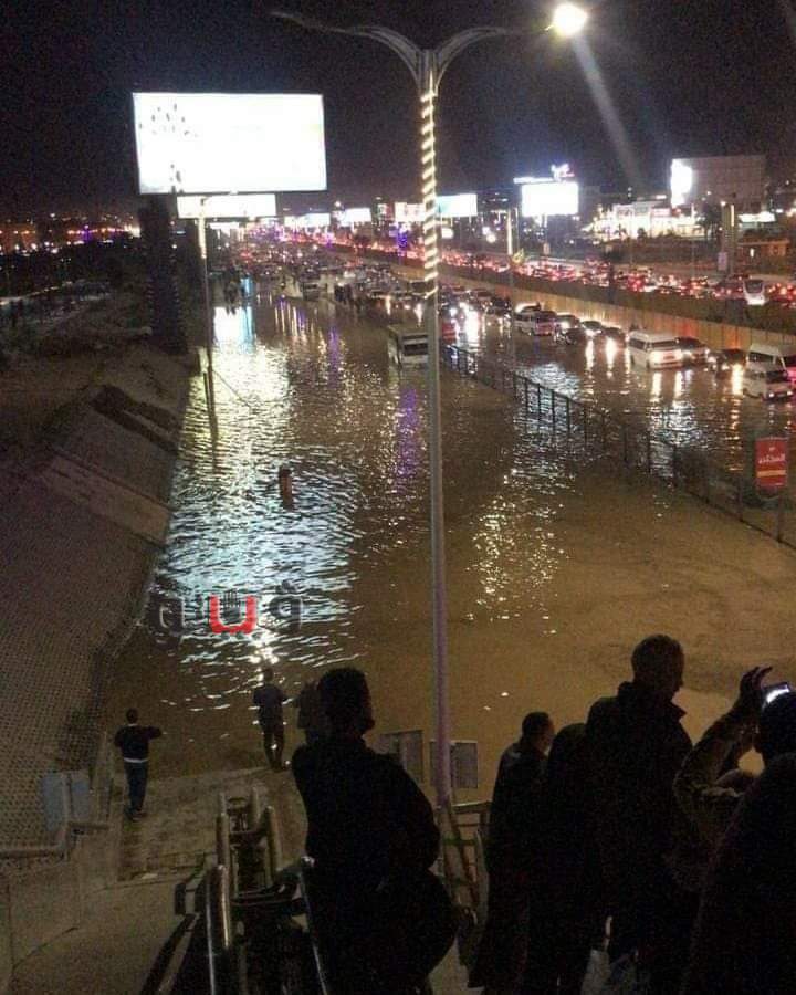 وجارى سحب المياه المتراكمة في طريق محور 26 يوليو والتخلص منها فى الأماكن الصحراوية بجانب المحور.