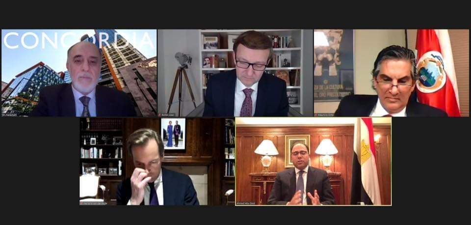 وجاء المؤتمر لمناقشة تجارب عدد من الدول في التعامل مع تداعيات جائحة كورونا، وتأثير الجائحة على العمل الدبلوماسي والعلاقات الاقتصادية الدولية.