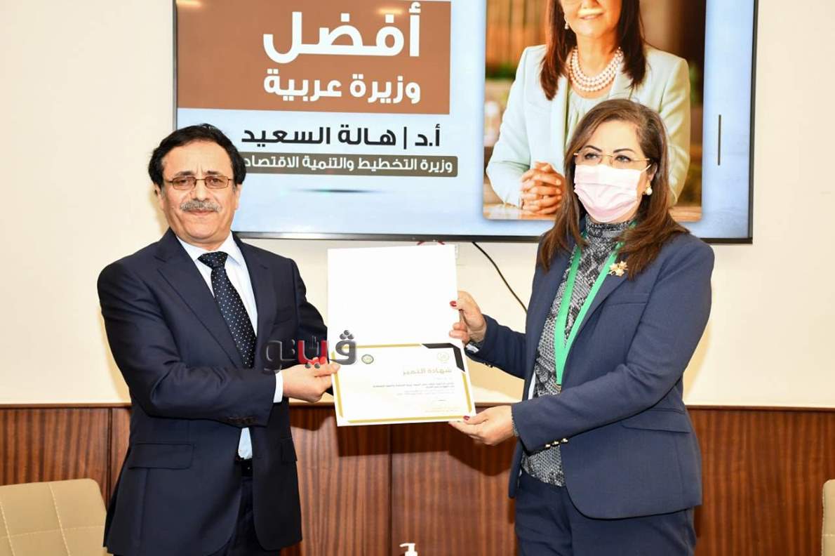 تسلمت اليوم الدكتورة هالة السعيد، وزيرة التخطيط والتنمية الاقتصادية جائزة أفضل وزيرة عربية في احتفالية بمقر الوزارة؛ وبحضور الدكتور ناصر القحطاني، مدير عام المنظمة العربية للتنمية الإدارية، والسادة مسئولي المنظمة وقيادات الوزارة.