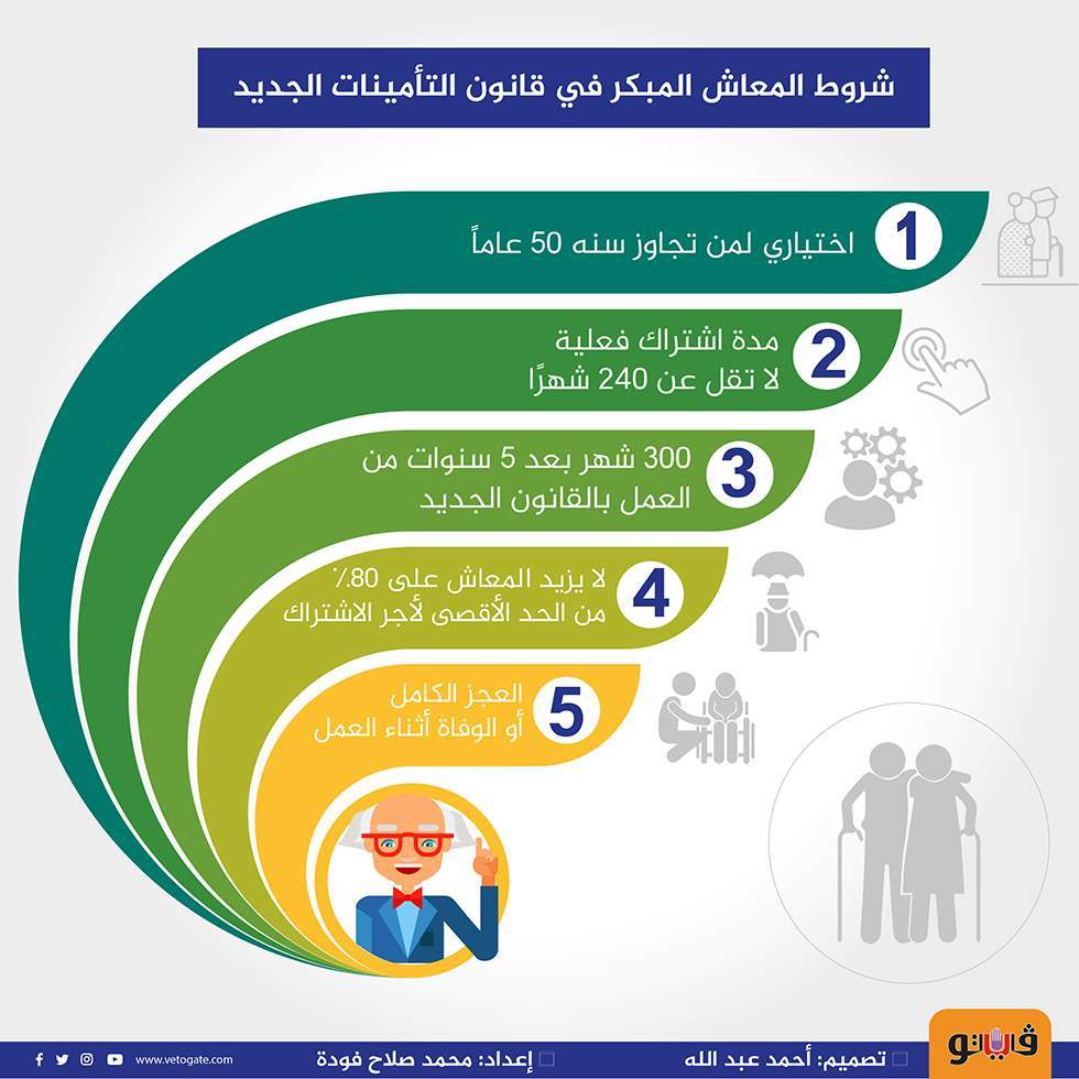 شروط المعاش المبكر في قانون التأمينات الجديد | إنفوجراف