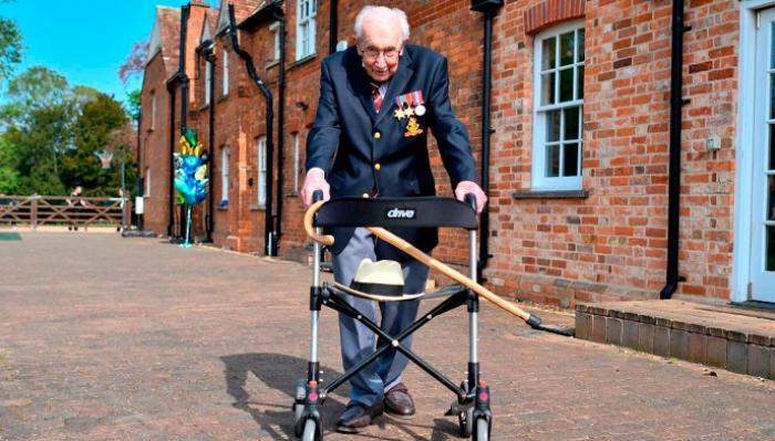 وتمكن مور البالغ من العمر 100 عام، وهو من قدامى المحاربين في الحرب العالمية الثانية، من جمع أكثر من 33 مليون جنيه إسترليني لهيئة الصحة العامة باستكماله، بعد عناء شديد، 100 لفة حول حديقته بمساعدة مشاية في أبريل.