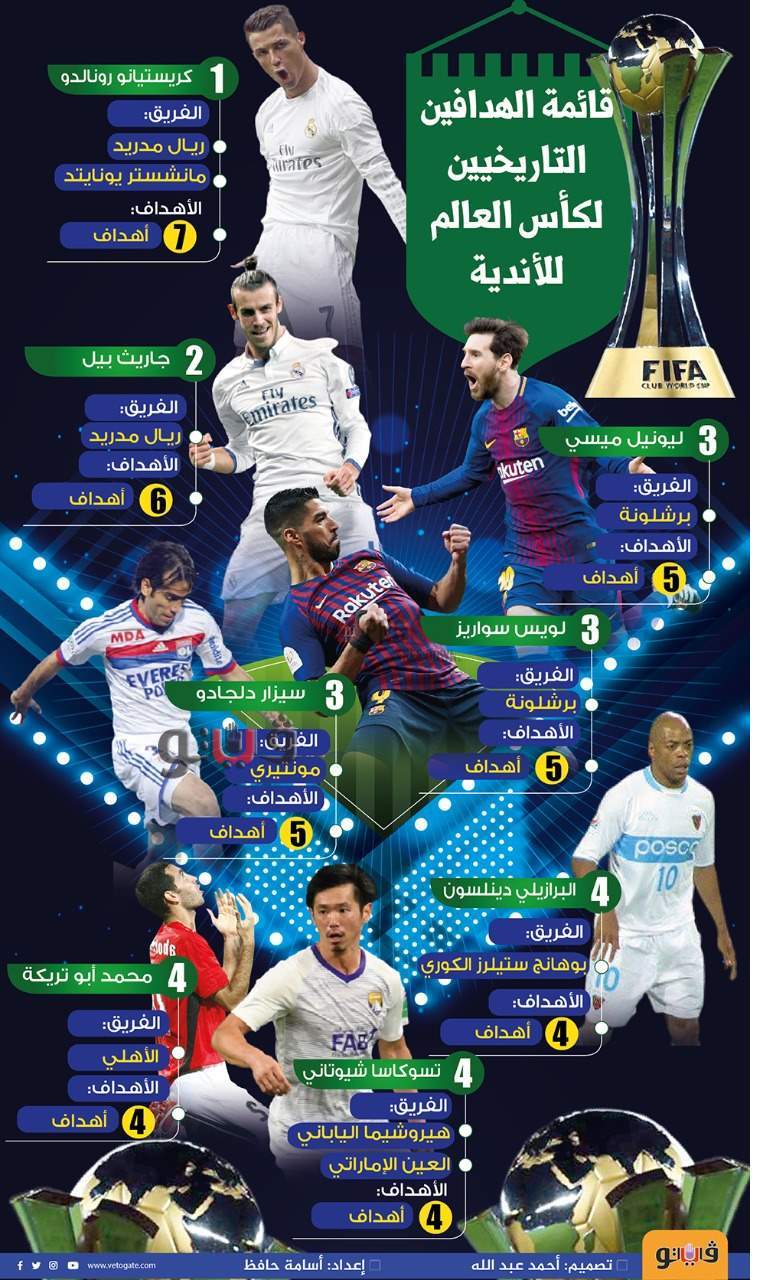 قائمة الهدافين التاريخيين لكأس العالم للأندية | إنفوجراف