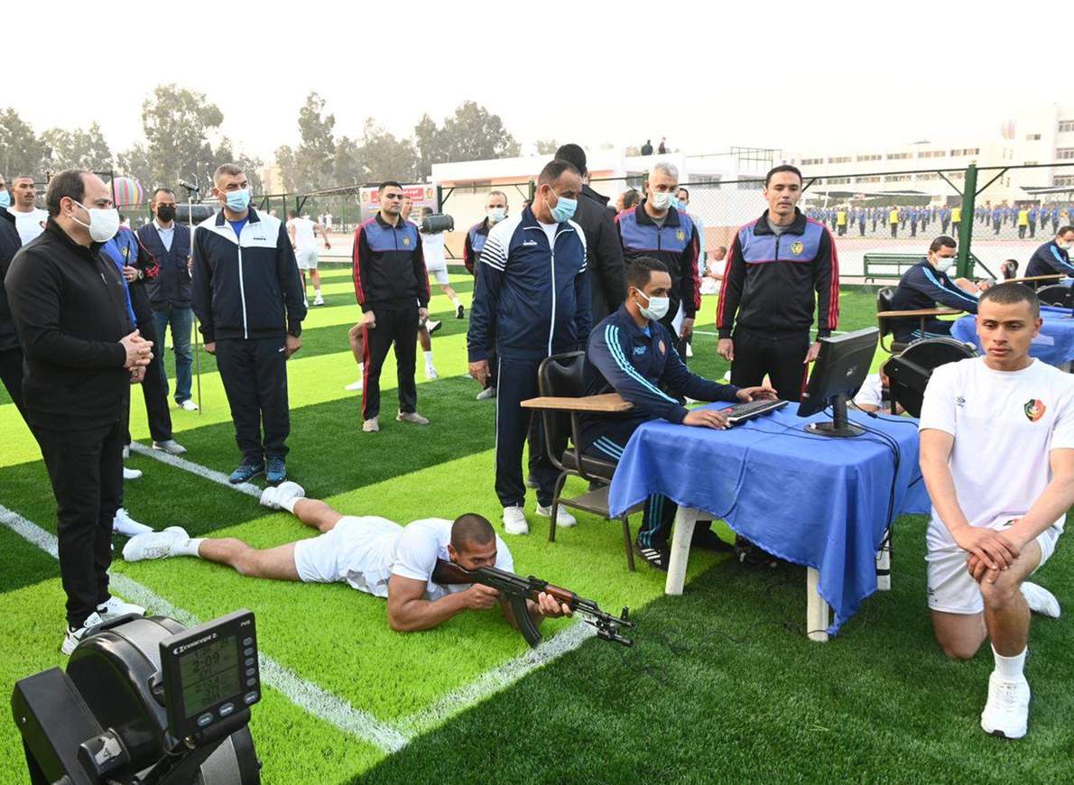 وتفقد الرئيس كذلك عددا من ميادين التدريب المطورة والموانع المختلفة وميادين الفروسية وحلقات الإشتباك وشاهد عددا من أنشطة شد المركبات بواسطة الحبال والتسلق بالحبال أظهرت مدى الجرأة والكفاءة البدنية العالية التي يتمتع بها الطلبة المستجدون.